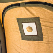 The tent is constructed from breathable 210 gsm TC canvas (65% polyester / 35% cotton). The material is eco-friendly, UV-resistant, mold-resistant, and fire-retardant. It promotes airflow while helping reduce condensation inside the tent.