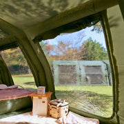 Breathable cotton canvas works together with an intelligent ventilation system to regulate humidity, reduce condensation, and maintain a healthier indoor climate across changing conditions. The inflatable frame maintains vertical tension, keeping the structure stable and spacious over time.