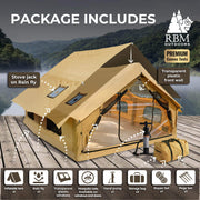 Includes tent, rain fly, ropes, hand pump, and storage bag. Ideal for family camping, glamping, and extended outdoor stays. Available with delivery across the USA