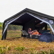 The Coody AirTarp is an inflatable canopy that creates a shaded, weather-protected area in front of your Coody tent. It expands your living space and makes camp setup faster, lighter, and more comfortable.