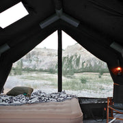 Its inflatable air-beam structure allows fast, hassle-free setup using the included pump — no poles required. Designed for all-season use above 32°F (0°C), the tent features a built-in stove jack for safe wood stove use during cooler nights.